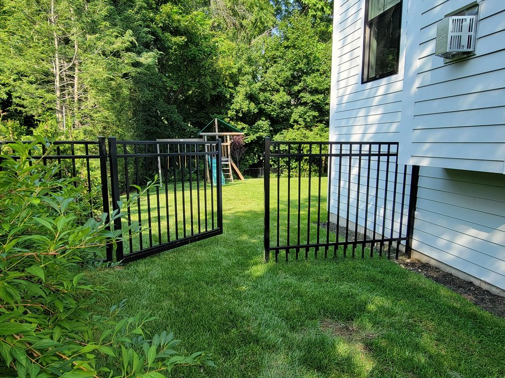 Sleek and reliable, an aluminum fence fits the face of any home. Easy to maintain and sustainable to the elements. The aluminum fence is cohesive resistant and powder coated in an anti rust material that enables it to keep its' elegant look for years to come!